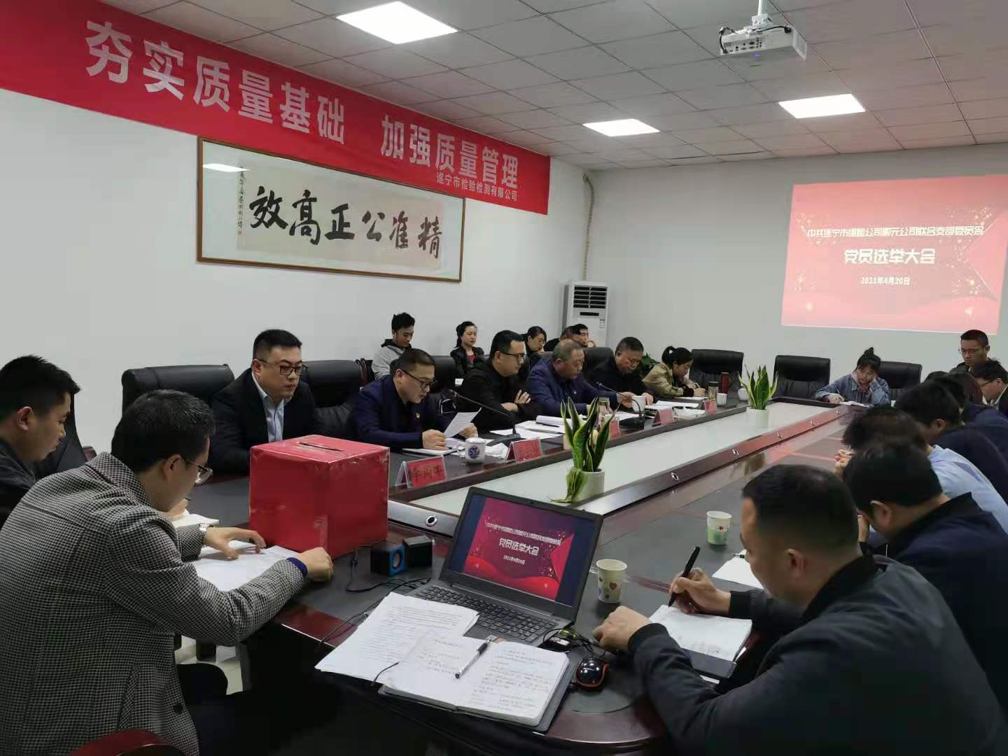 ? ? 4月20日下午,遂檢公司順元公司聯(lián)合黨支部順利召開了黨員選舉大會(huì),會(huì)議應(yīng)到黨員人數(shù)24人,實(shí)到黨員人數(shù)22人,符合黨章和基層黨組織選舉的相關(guān)規(guī)定。會(huì)議由賈杰洪同志主持,興業(yè)集團(tuán)黨委委員、紀(jì)委書記蔡坤辰蒞臨會(huì)議指導(dǎo)并講話。